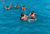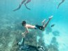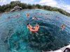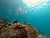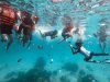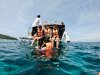 The joyful exploration of the island starts when we arrive while the natural sculptured rock around makes us surprised. The school of colorful fish meets and greets everyone upon moving nearby. Late in the morning, brighter sunshine causes us to relax under the big colorful design umbrellas. We imagine a gaudy color bikini on the white body of a young girl whilst looking at the flashy color from big umbrellas along the white sand beach. Many are busy changing their diving suits to experience plate and sheet corals underwater. Some with Siam.